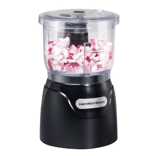 The Hamilton Beach® Stack & Press™ 3 Cup Food Chopper is the perfect kitchen tool to speed up food prep because it handles chopping, pureeing and emulsifying in minutes. You’ll use it for everything from chopping onions and nuts to mincing herbs, pureeing hummus and mixing dressings. It’s perfectly sized for everyday use with a 3 cup capacity bowl and is compact enough to fit in any kitchen. Once you’ve added food to the bowl, press the patented lid down to pulse and release to stop — it’s that simple.