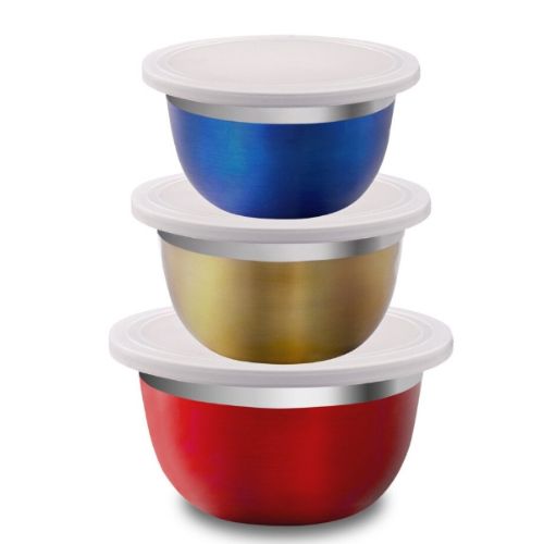 STAINLESS STEEL BOWLS IN COLOURS WITH LID S/3 SS-17310